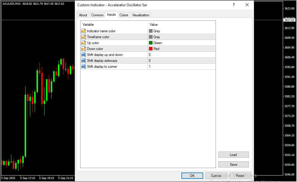 The Accelerator Oscillator SAR Display Indicator is a free and popular forex tool designed for the MT4 trading platform. By combining two powerful indicators – the Accelerator Oscillator (AC) and the Parabolic SAR (SAR) – it gives traders a complete picture of market momentum and trend direction in one chart.