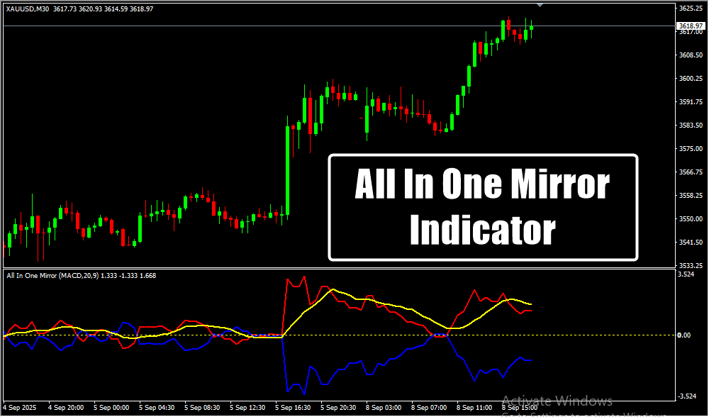 Blue line acts as a mirrored reflection of the red line, helping validate the direction and strength of market movements.