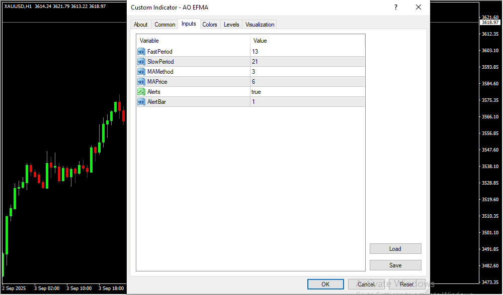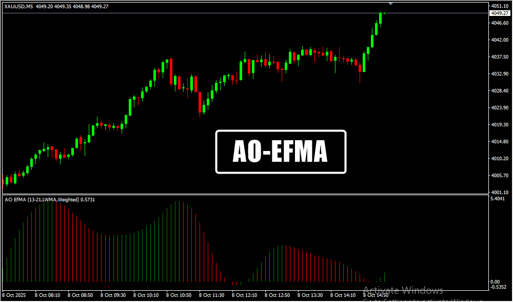 The AO EFMA MT4 Indicator simplifies trend and momentum analysis by merging two proven tools — the Awesome Oscillator and the Exponential Moving Average.