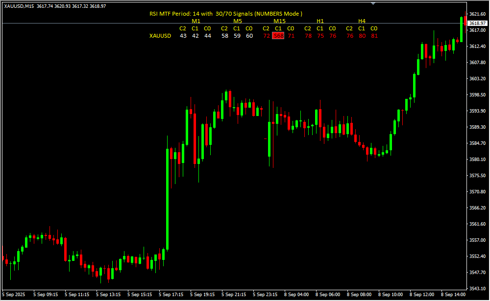 📈 Monitors RSI across multiple timeframes and currency pairs to identify trading opportunities.