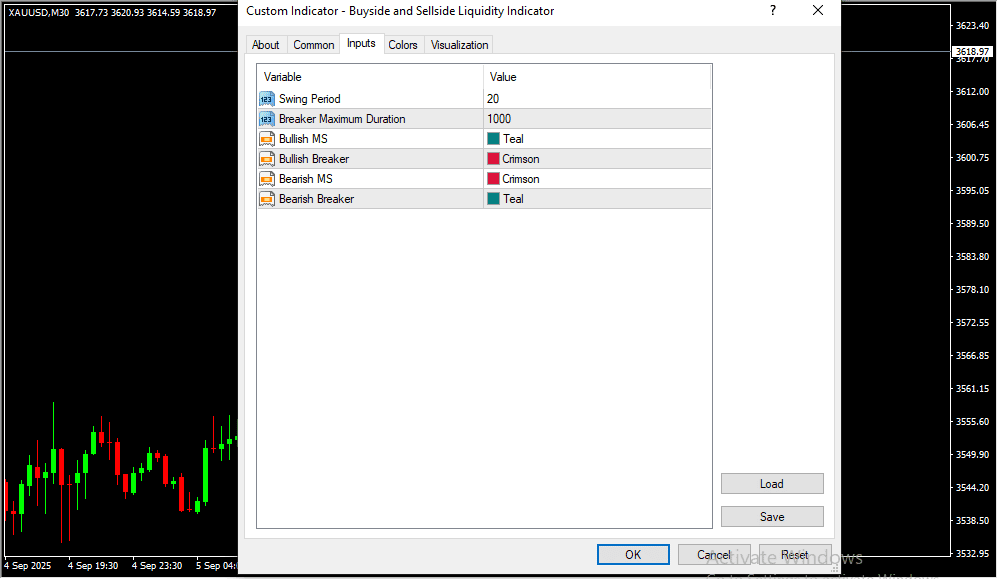 • Breaker Maximum Duration: Determines how many candles liquidity levels remain after a breakout