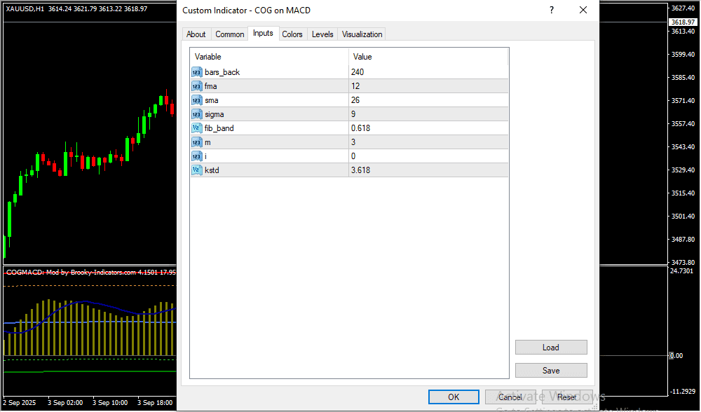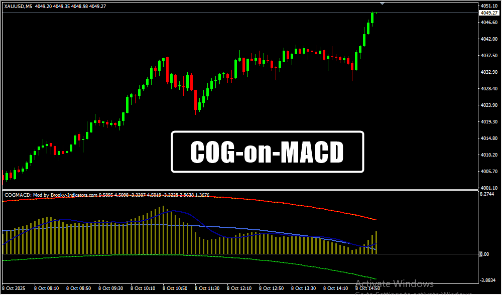 • When MACD shows strong momentum, the COG bands provide visual reference points where price may bounce or reverse.