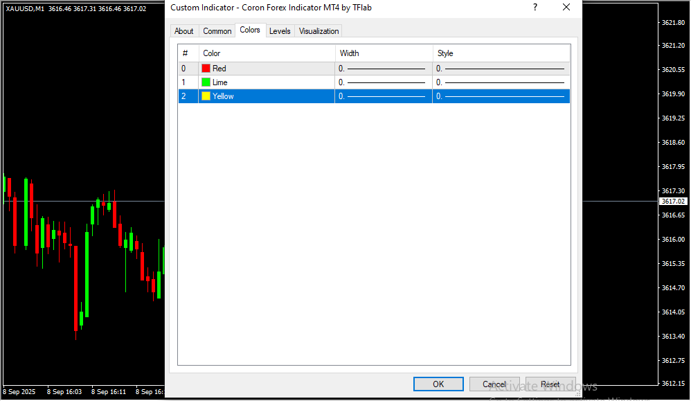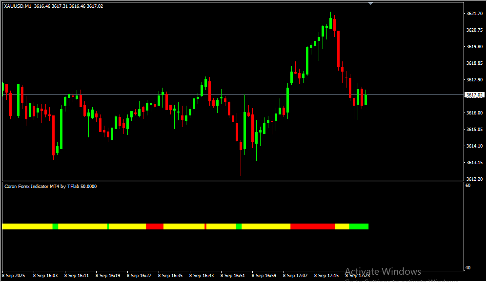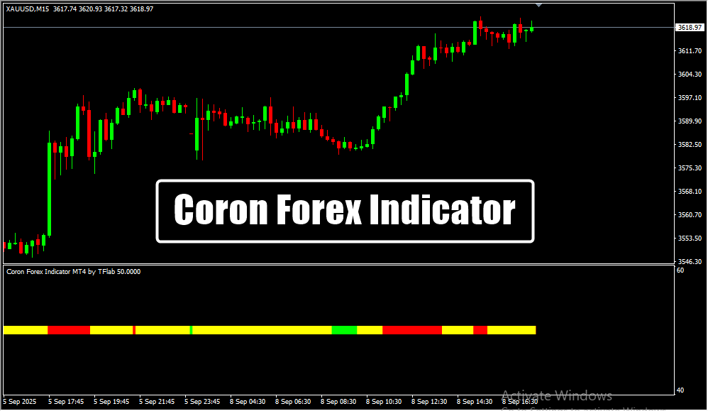 Ranging Market Example: Yellow histogram → market is sideways → avoid trades or wait for trend