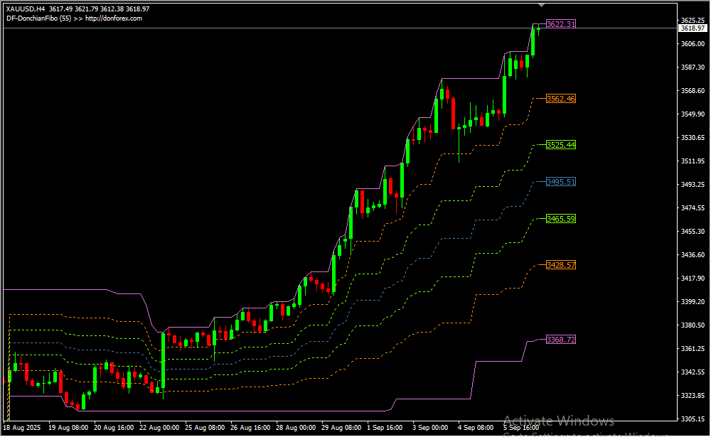 📊 Free MT4 indicator combining Donchian Channels and Fibonacci Retracement.