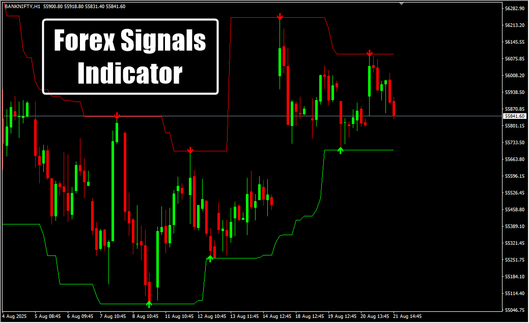 The Forex Signals Indicator for MT4 is one of the most straightforward trading tools designed for both beginners and experienced traders. It combines visual arrows with dynamic channel levels to provide: