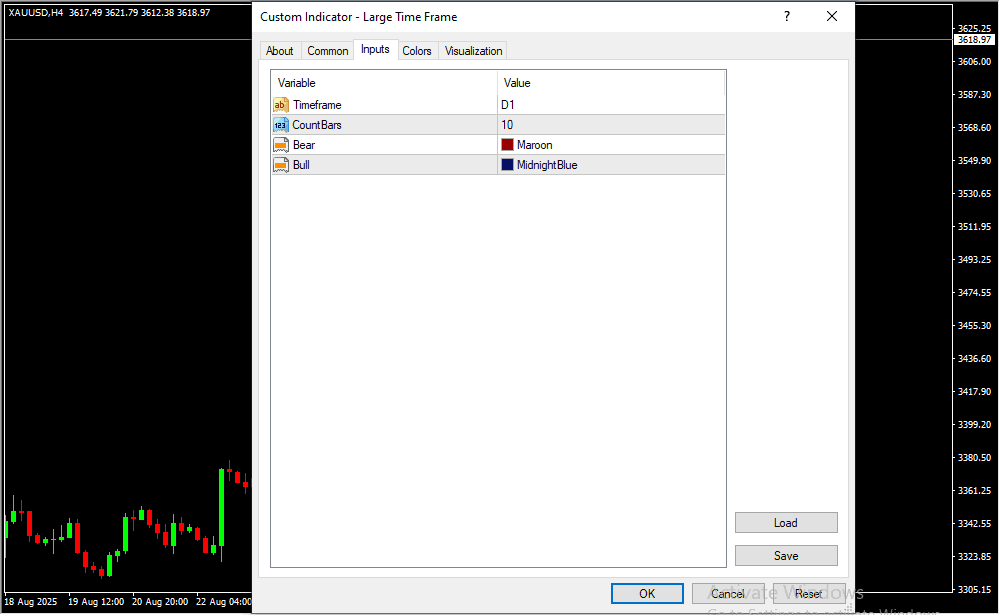 📊 Indicator Overview: The Large Time Frame Indicator is a free and popular MT4 tool designed to help traders monitor market trends across larger time frames that aren’t available in standard MT4 charts.