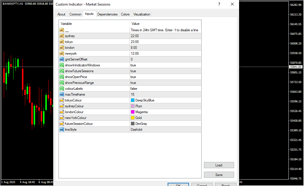• Show in Indicator Windows → Enables display of session lines in indicator sub-windows as well as the main chart.