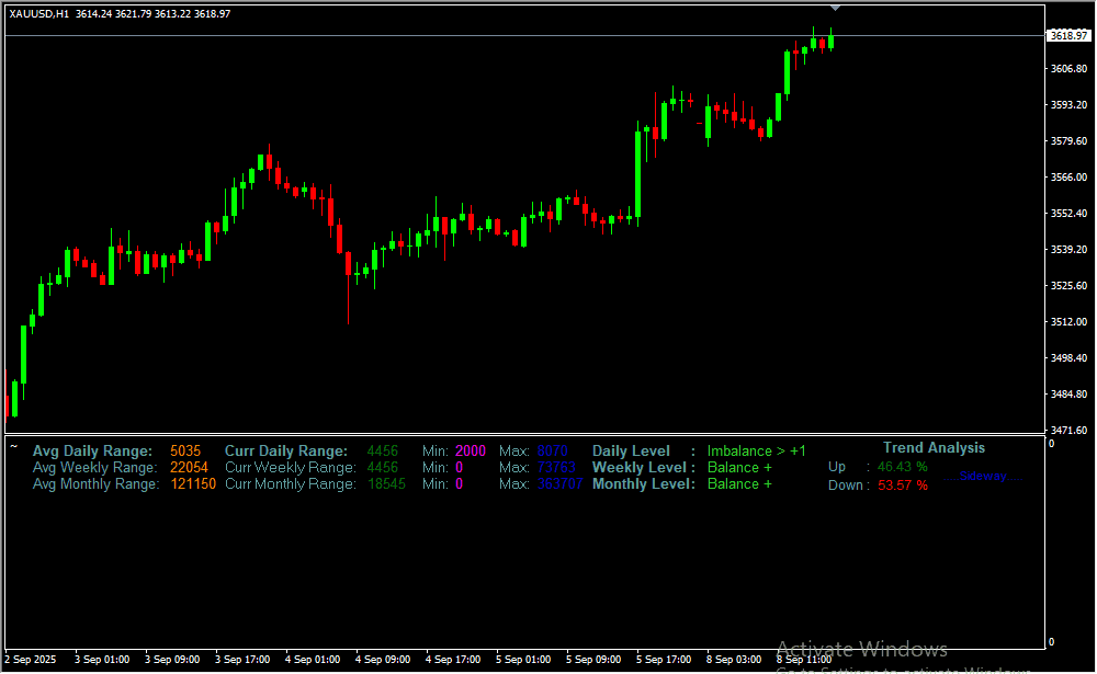 💹 Spread Display – Monitors the spread in real time to assess market liquidity and volatility.