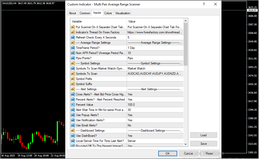Time Frame Period? | Timeframe for average range calculation. |