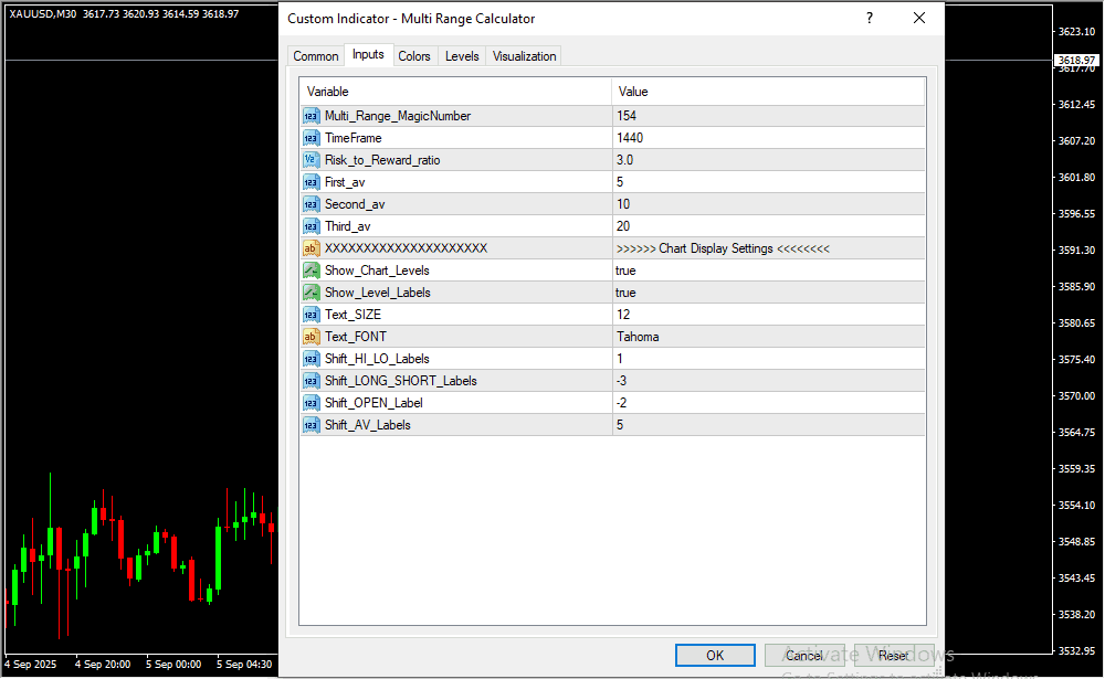 Multi_Range_MagicNumber | Unique identifier for trades/orders opened by this strategy (used by the platform to separate from other EAs/indicators). |