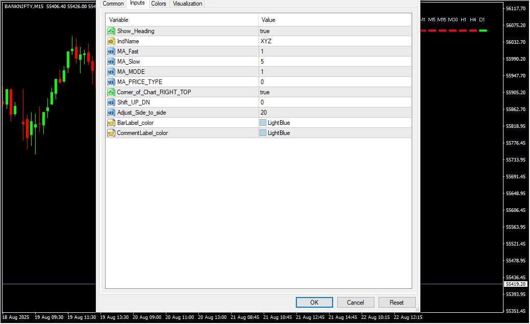 ✅ Indicator Name (IndName) – Name of the indicator shown on the chart (e.g., XYZ).