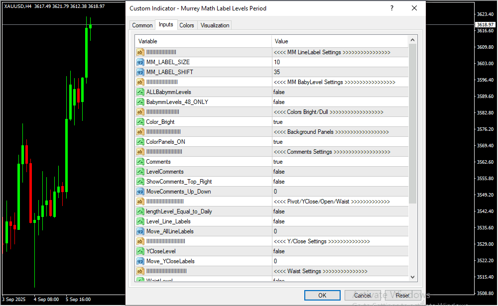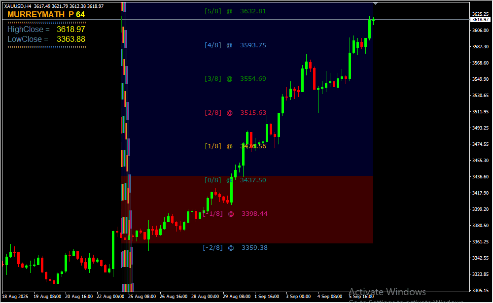 ⚡ Murrey Math Level Calculation – Plots key support and resistance lines based on Murrey Math formulas.