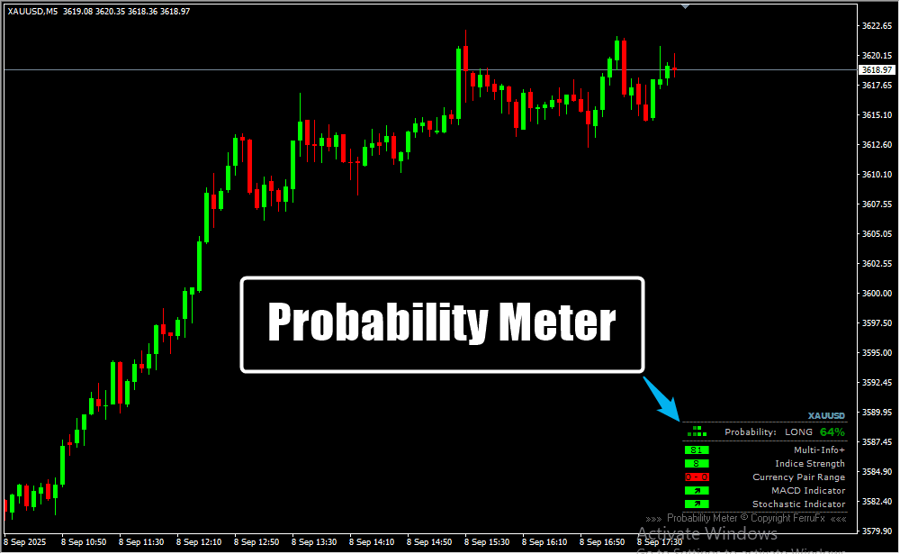 📊 Probability Meter Display – Graphically shows the likelihood of successful trades.