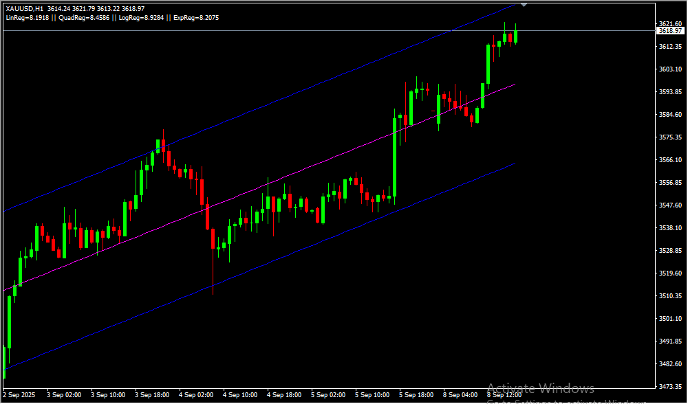 It automatically plots regression channels that adapt dynamically to price movements, showing trend strength and possible price targets.