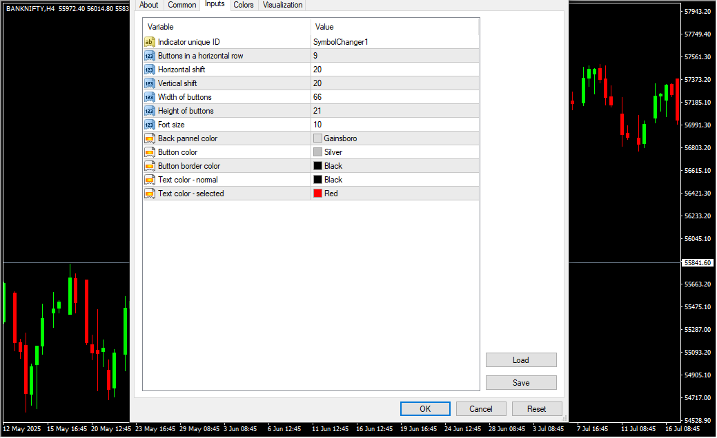 📌 Buttons Arrangement: Determines whether buttons are placed horizontally or vertically on the chart.