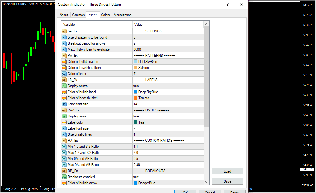 • Max. History Bars to evaluate → Sets the maximum number of bars to scan for patterns.