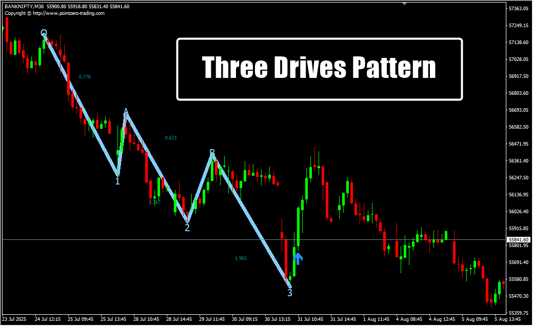 • 🔹 Pattern Detection – Plots three significant price points forming the Three Drives pattern.