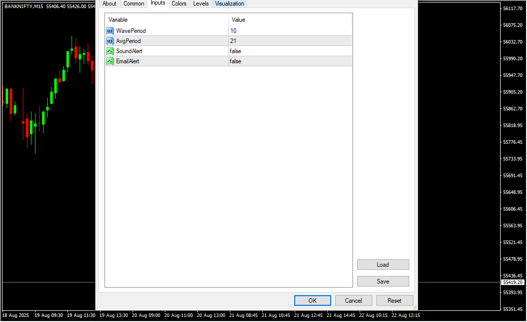 • 📈 Average Period – Sets the smoothing length for the Moving Average applied to the wave, helping filter out market noise.