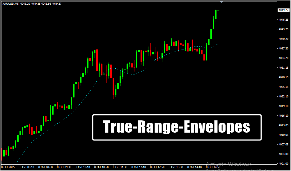 The True Range Envelopes MT4 Indicator is a custom-built tool that helps traders understand and respond to market volatility. Instead of relying on fixed bands, it uses the Average True Range (ATR) to automatically adjust envelope width. When volatility rises, the bands expand — and when markets calm down, they contract. This dynamic behavior makes it far more reliable than static indicators, especially in fast-changing conditions.