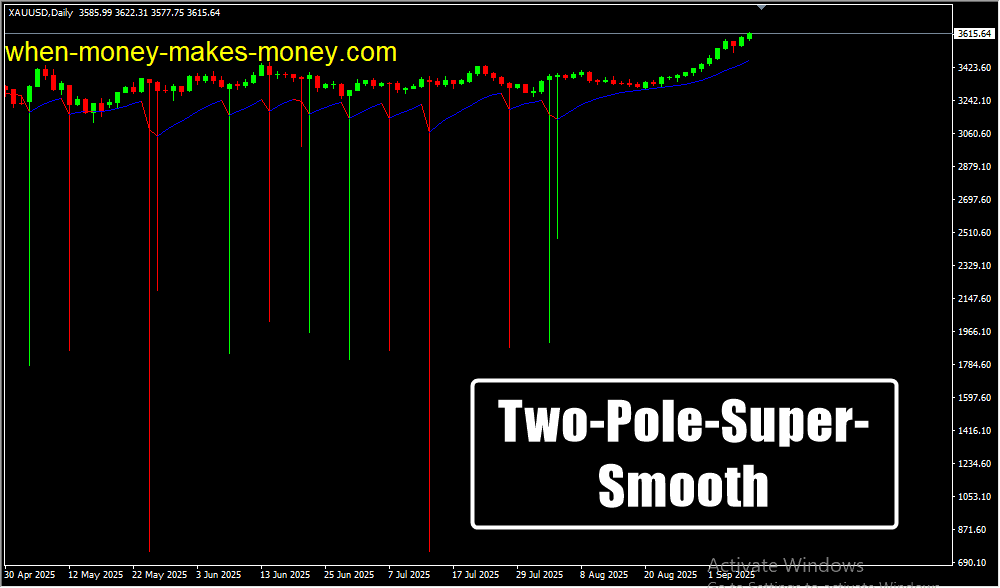 Traders appreciate this indicator for its simplicity and precision. Instead of loading multiple indicators on a chart, the Two Pole Super Smooth serves as a standalone trend-filtering system. It clearly highlights phases of strength and weakness, allowing traders to: