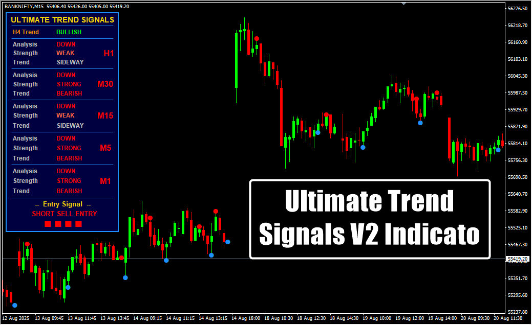 📌 Accurate Entry & Exit Signals – The Ultimate Trend Signals V2 Indicator for MT4 provides precise buy and sell signals on the main chart using blue and red circles.