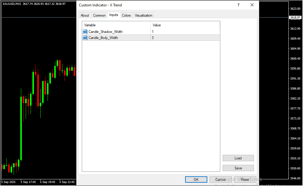 Candle_Shadow_Width → Defines the thickness of the candlestick’s shadow/wick (the line above and below the candle body).